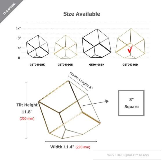 GET0408GD – Big Gold Tilted Cube Geometric Glass Terrarium – 12″