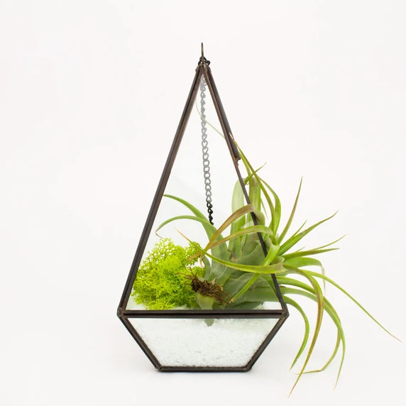 GET0610BK – Tall Black Raised Pyramid Geometric Glass Terrarium. 9.5″H