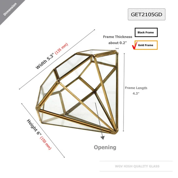 GET2105GD – Gold Diamond Geometric Glass Terrarium – 6″